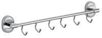 Savol S-008206-1 — надёжная настенная планка с шестью крючками для ванной комнаты, прихожей или кухни. Компактный аксессуар помогает аккуратно разместить полотенца, халаты и аксессуары, экономя пространство и поддерживая порядок. Благодаря прочной металлической основе и хромированному покрытию планка устойчива к влаге, коррозии и ежедневной эксплуатации.