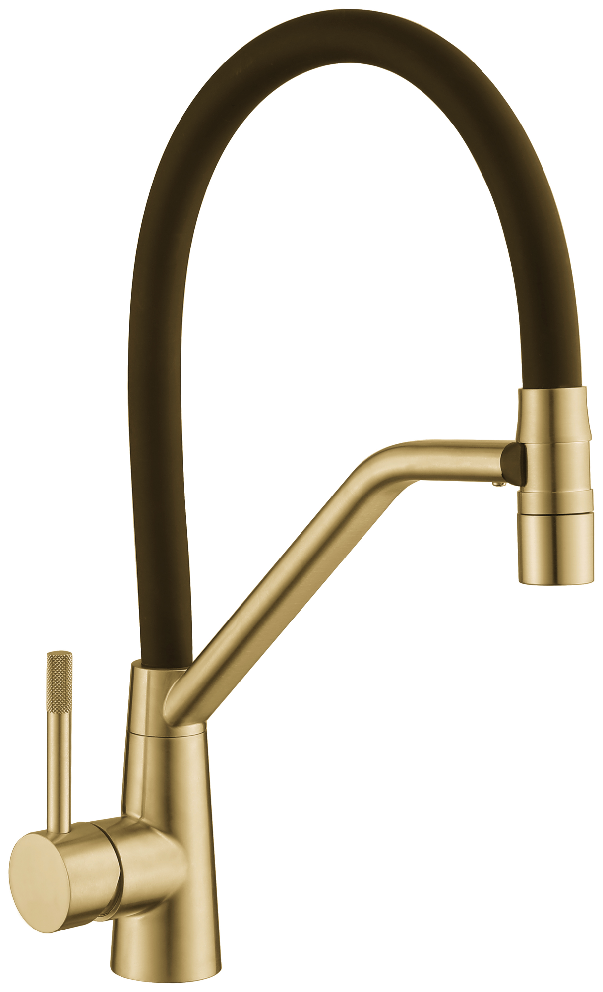Матовое золотое покрытие придает смесителю элегантный внешний вид и делает его заметным элементом интерьера кухни.
